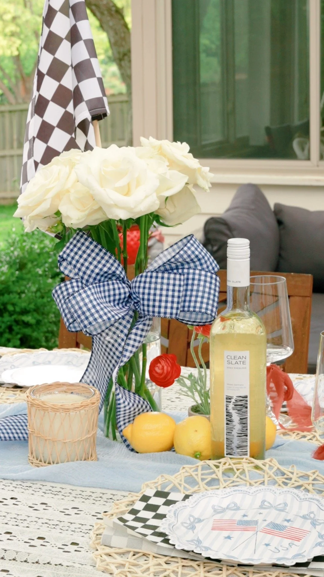 Red, white, and blue tablecloths, checkered napkins, and mini flags make it festive without going overboard.